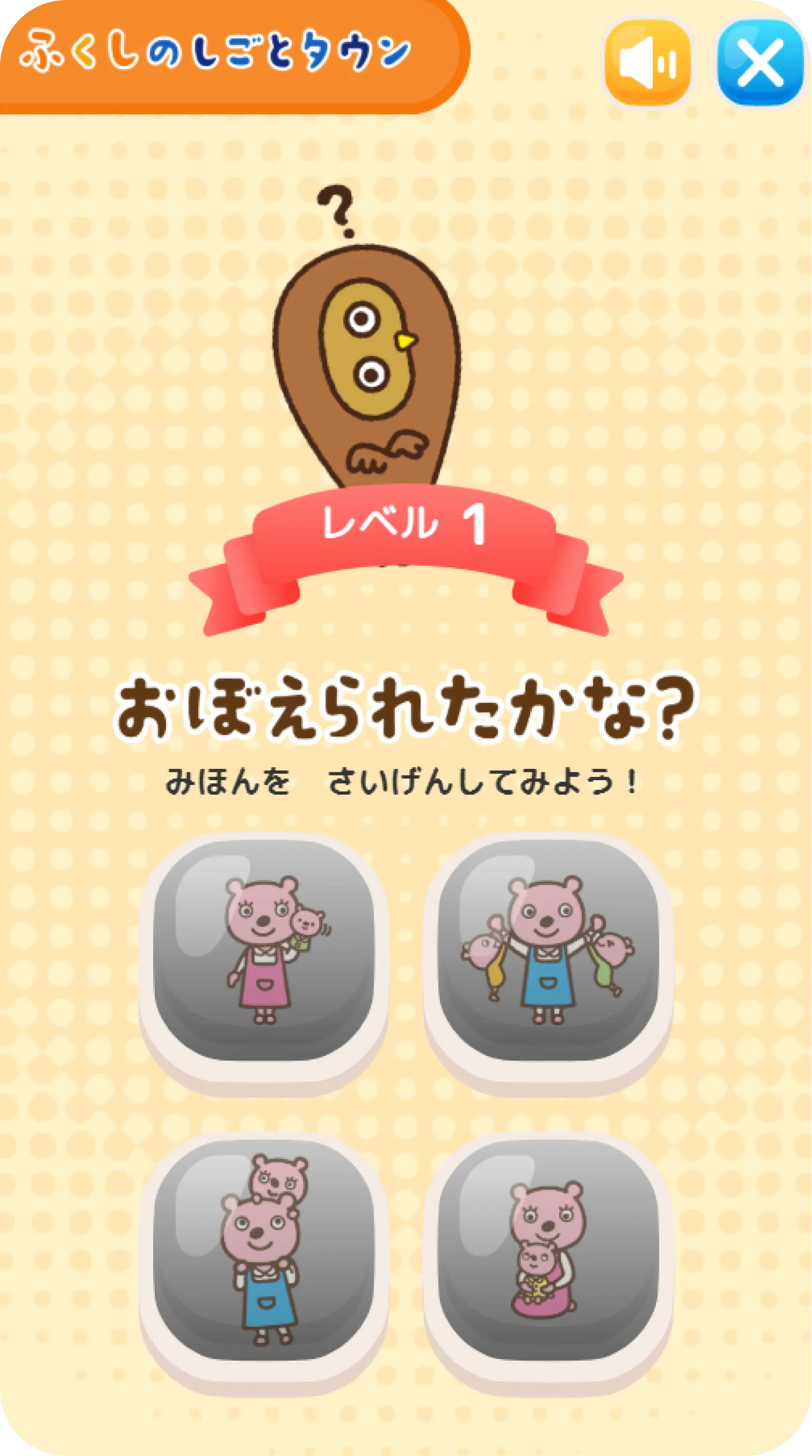 • がしめすじゅんばんを、じとおりにボタンで、さいげんしていくゲームだよ!